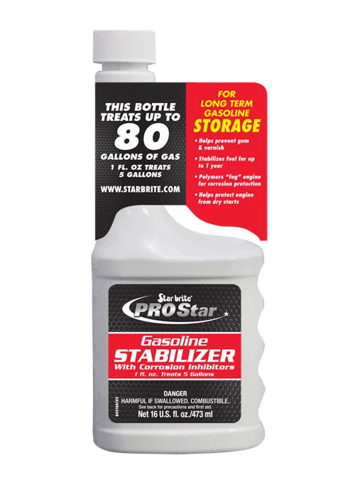 The Star Brite PRO Star Gasoline Stabilizer protects gas and engine components during storage, for inboard and outboard gasoline engines.